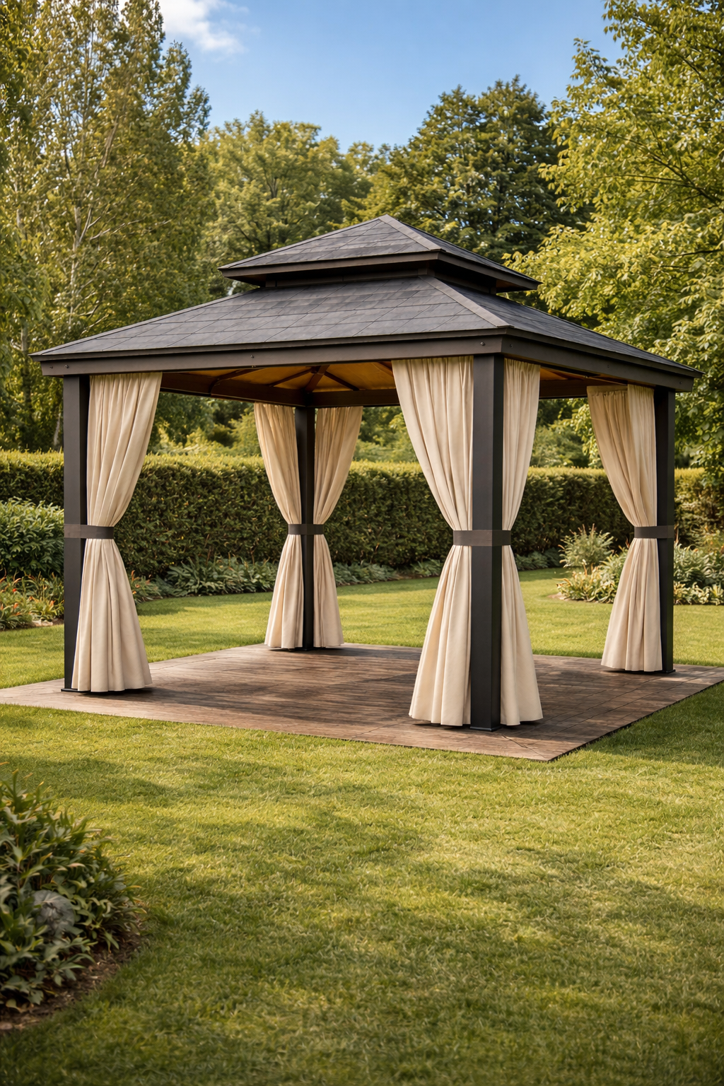 Das Gartenhaus ist ein kompakter und funktionaler Holzbau für den Einsatz im Garten. Es eignet sich zur Aufbewahrung von Gartengeräten, Werkzeugen oder kleineren Gegenständen. Durch seine schlichte Bauweise fügt es sich unauffällig in verschiedene Gartenumgebungen ein. Die stabile Konstruktion bietet Schutz vor Witterungseinflüssen und sorgt für eine ordentliche Aufbewahrung.